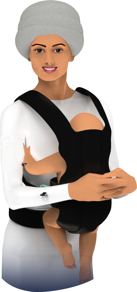 The concept for this product began over 35 years ago, when | was a new mom. I wanted to hold my daughter as much as possible, and she wanted me to constantly hold her. Two years later, things were a little more demanding when my son arrived. I thought, wouldn't it be nice if there were two of me?